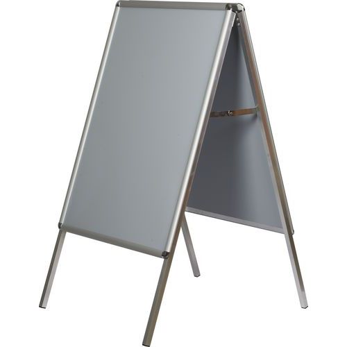 Reklamný stojan A na prezentáciu reklamných plagátov alebo fotografií. Predná strana je krytá antireflexnou UV fóliou. Jednoduchá výmena plagátov odklopením bočných hliníkových profilov. Stabilitu zaisťujú hliníkové nohy so skoseným plastovým zakončením. Áčka sú určené na použitie v interiéri.