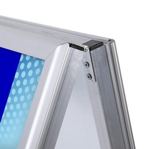 - Jednoduchá a rýchla výmena plagátu odklopením bočných hliníkových profilov.