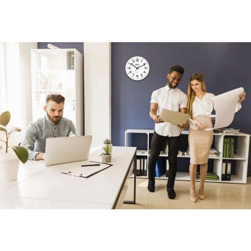 Analógové hodiny Manutan Expert, autonómne DCF, priemer 30 cm, biele