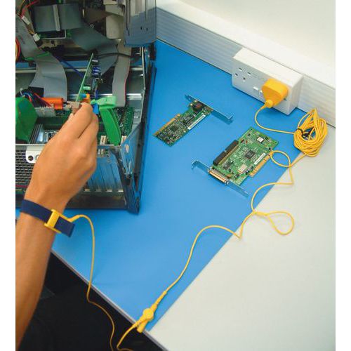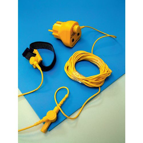 - súprava obsahuje: uzemňovaciu zásuvku, pásku na zápästie, uzemňovací kábel 1,8 a 4,5 m uzemnené cez 10 mm kolík – zabudovaný v rohoži, ľahko čistiteľná