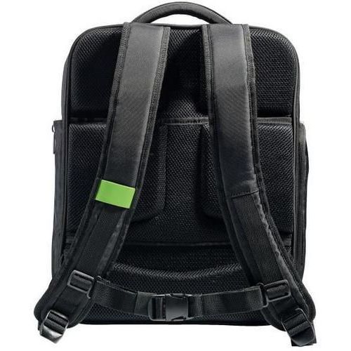- Batoh na notebook Leitz Complete je ľahký a kvalitný s dvoma hlavnými a jedným menším predným oddielom. Výrazný a elegantný dizajn doplňujú kvalitné zipsy a štýlové matne kovové pracky. Batoh ponúka miesto na všetky mobilné zariadenia, 15,6 notebook a dokumenty do formátu A4. Pohodlné nosenie vďaka mäkkej rukoväti z pravej kože, nastaviteľným ramenným popruhom, pracke na hrudi a chrbtovému vetraciemu systému. Batoh je možné upevniť na držadlo pojazdného kufra. Čierny povrch kontrastuje so zeleným vnútrom, čím uľahčuje hľadanie predmetov.