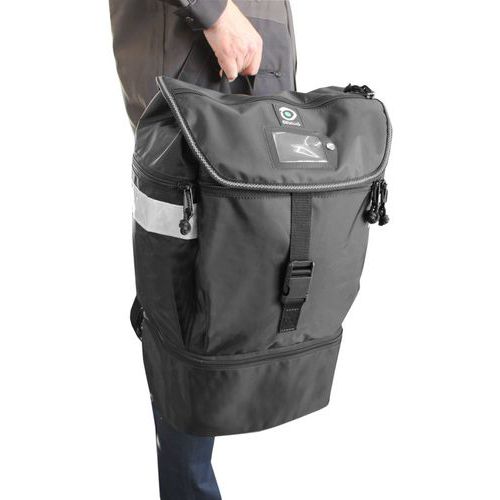 Batoh s priehradkou na topánky pod taškou na uloženie a prepravu všetkých osobných ochranných prostriedkov. Praktické, s oddeleným priestorom pre každú osobnú ochrannú pomôcku: stredové vrecko na prilbu, bočné vrecká a predné vrecko na rukavice atď. Ľahko sa prenáša ako batoh alebo pomocou stredovej rukoväte. Uzatváranie stredového vrecka zaisťuje, že taška zostane nepremokavá.