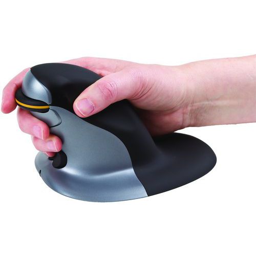 - Vertikálne prevedenie podporuje ergonomickejšiu polohu a zároveň udržuje myš vo zvislej polohe, aby sa zabránilo namáhaniu zápästia.