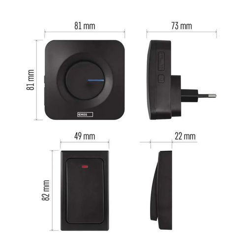 Rozmery zvončeka 73 x 73 x 81 mm, rozmery tlačidla 22 x 49 x 82 mm.