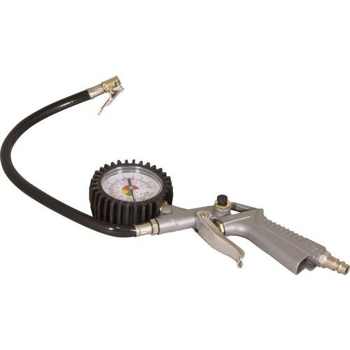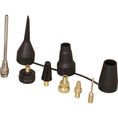 Súčasťou balenia je pištoľ s manometrom a adaptérom na dofukovanie pneumatík, mosadzný adaptér na bicykle, mosadzný kužeľový univerzálny adaptér, mosadzná ihla na lopty, adaptér na plastové adaptéry - plastová ihla a adaptéry na člny a matrace.