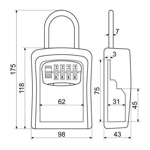 Bezpečnostná oceľová schránka (depozit) v plastovom kryte na uloženie kľúčov