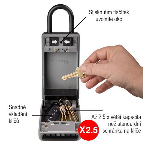 - Vnútorná kapacita schránky je 2,5-krát väčšia ako majú štandardné schránky na kľúče.
