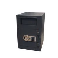 - Jednoplášťový sejf s elektronickým zámkom a možnosťou uloženia peňazí či dokumentov bez prístupu k obsahu trezoru. Ochranu proti vniknutiu zaisťuje trojstranný uzamykací mechanizmus s tromi zabezpečovacími čapmi.