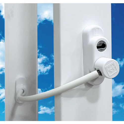 Bezpečnostný lankový zámok RHL na plastové, hliníkové a drevené okná, biely