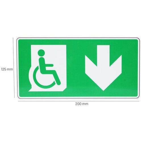 - Evakuačné značenie označujúce núdzový východ pre osoby so zníženou pohyblivosťou.