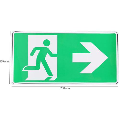 - Kombinácia piktogramu a šípky vľavo dáva jasnú a presnú informáciu o smere, ktorým sa vydať v prípade núdze.