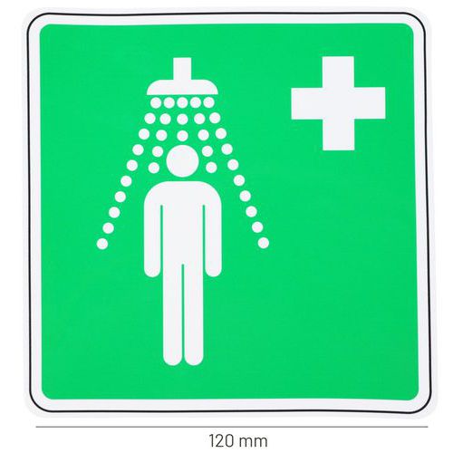 Bezpečnostná tabuľka Manutan Expert - Zdravotnícka sprcha, samolepiaca fólia, 120 mm
