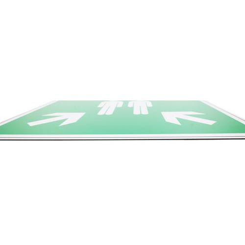 - Bezpečnostné únikové tabuľky, ktoré označujú miesto na zhromaždenie osôb počas evakuácie.