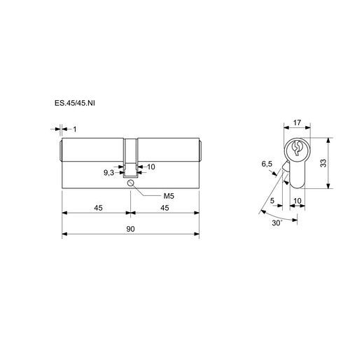 Bezpečnostná vložka EuroSecure, 45/45 mm, nikel
