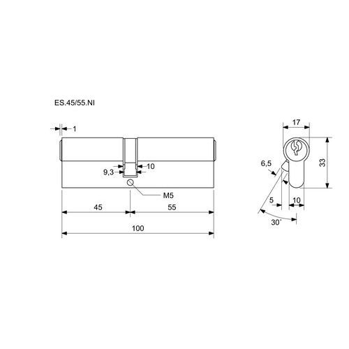Bezpečnostná vložka EuroSecure, 45/55 mm, nikel