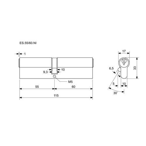 Bezpečnostné vložky EuroSecure, 55 mm, nikel