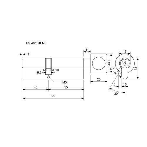 Bezpečnostná vložka EuroSecure s guľou, 40/55 mm, nikel