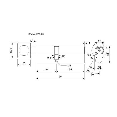 Bezpečnostná vložka EuroSecure s guľou, 40/55 mm, nikel