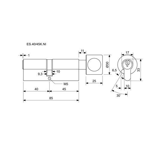 Bezpečnostná vložka EuroSecure s guľôčkou, 40/45 mm, nikel