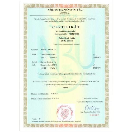 - Certifikát NBÚ typ 2, SS4=2