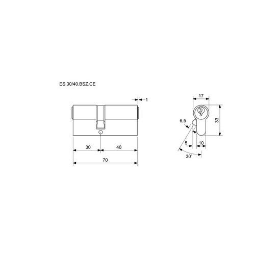 Bezpečnostné vložky EuroSecure s prestupovou vložkou, 30 mm, čierna