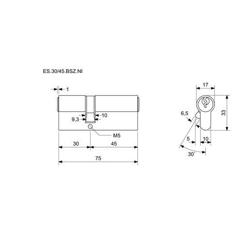 Bezpečnostné vložky EuroSecure s prestupovou vložkou, 30 mm, nikel