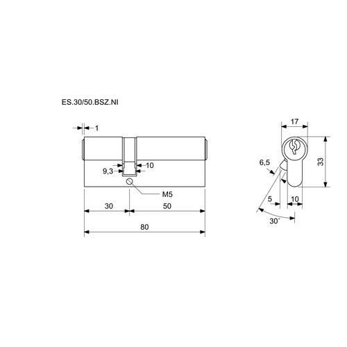Bezpečnostné vložky EuroSecure s prestupovou vložkou, 30 mm, nikel