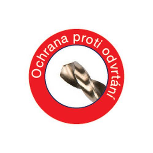 - Ochrana proti odvŕtaniu pomocou 6 prvkov z kalenej ocele, 5 kolíkov a 1 stavidlo.