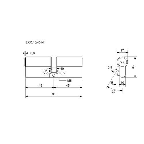 Bezpečnostná vložka EuroXStar, 45/45 mm, nikel