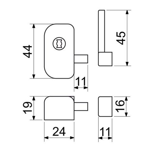 - Bezpečnostný výklopný zámok na plastové, hliníkové a drevené okná.