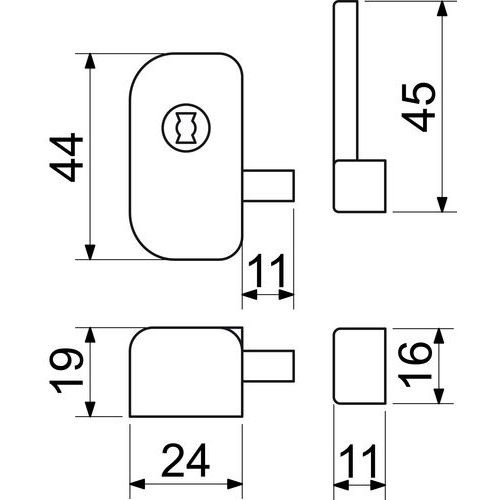 - Bezpečnostný výklopný zámok na plastové, hliníkové a drevené okná.