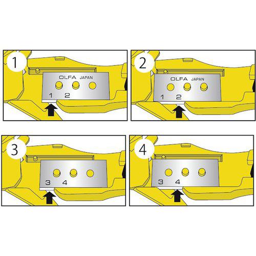 - Štyri rôzne polohy noža pre štyri rôzne brity.