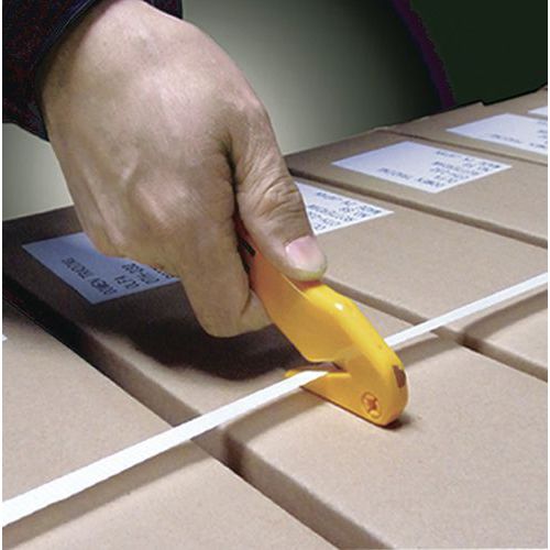 - Kovová záložka na rezanie pásky, páskovanie a zmršťovacia fólia na kartónových škatuliach.