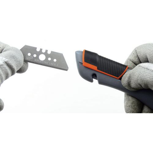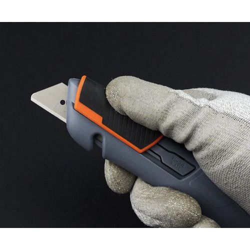 - Poloautomatický bezpečnostný nôž s posuvníkom a pružinou, vhodný pre ľavákov aj pravákov.