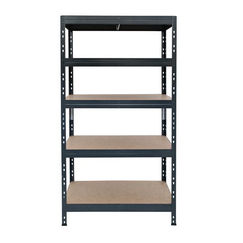 Bezskrutkové policové regály Manutan Expert Rapid 3 vhodné do kancelárií, dielní a skladov. Polica z kvalitnej drevovláknitej dosky s vysokou hustotou (HDF) je možné stavať v rastri 40 mm. Regály je možné spájať do zostáv pomocou spojovacích čapov. Ochranné plastové pätky. Konštrukcia z oceľového plechu hr. 1 – 1,5 mm. Povrchová úprava pozinkovaním alebo práškovým lakom. Regály je možné spájať do zostáv pomocou spojovacích čapov. Stojky sa skladajú z dvoch častí a regál tak je možné prestavať na dielenský stôl. Max. zaťaženie (kg) : 1250 kg Záruka výrobcu pre zákazníka : 10 rokov Max. zaťaženie police (kg) : 250 kg
