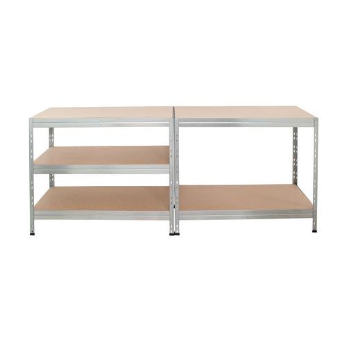 Bezskrutkové policové regály Manutan Expert Rapid 3 vhodné do kancelárií, dielní a skladov. Polica z kvalitnej drevovláknitej dosky s vysokou hustotou (HDF) je možné stavať v rastri 40 mm. Regály je možné spájať do zostáv pomocou spojovacích čapov. Ochranné plastové pätky. Konštrukcia z oceľového plechu hr. 1 – 1,5 mm. Povrchová úprava pozinkovaním alebo práškovým lakom. Regály je možné spájať do zostáv pomocou spojovacích čapov. Stojky sa skladajú z dvoch častí a regál tak je možné prestavať na dielenský stôl.