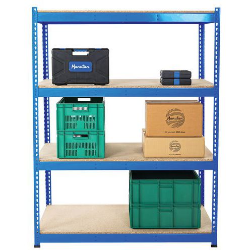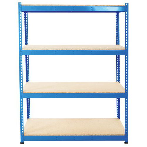 Kovový regál Rapid 1, 198 x 152,5 x 45,5 cm, 440 kg/polica, 4 drevotrieskové police, modrý