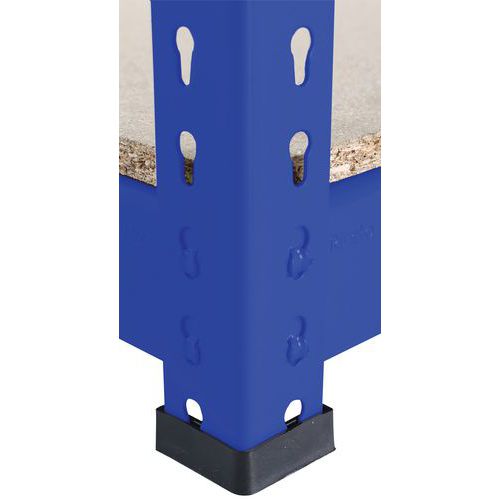 - Ochranné plastové pätky (možnosť dokúpenia kovových pätiek na prichytenie stojok regálu k podlahe).