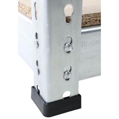 - Ochranné plastové pätky (možnosť dokúpenia kovových pätiek na prichytenie stojok regálu k podlahe).