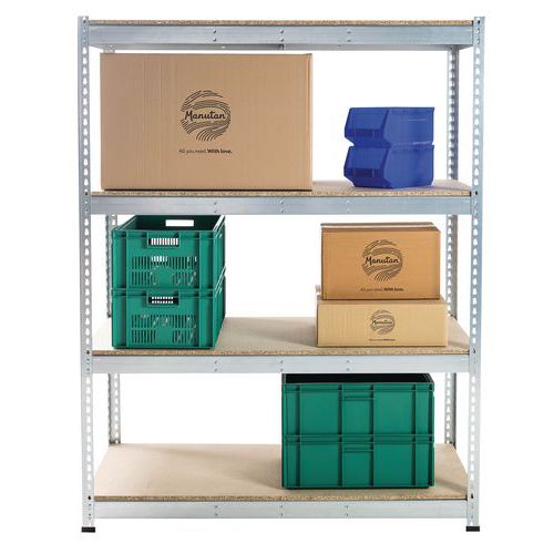 Kovový regál Rapid 1, 198 x 152,5 x 45,5 cm, 440 kg/polica, 4 drevotrieskové police, pozink