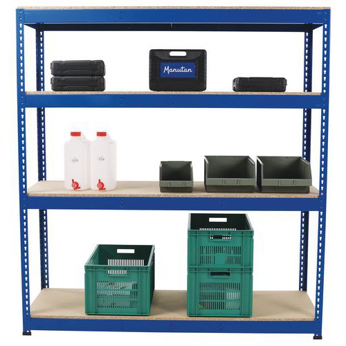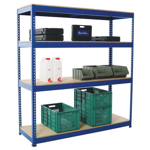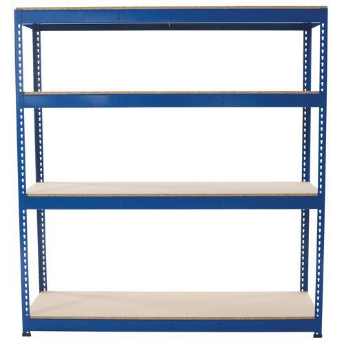 Kovový regál Rapid 1, 198 x 183 x 45,5 cm, 440 kg/polica, 4 drevotrieskové police, modrý