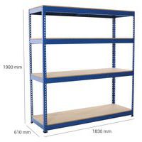 Kovový regál Rapid 1, 198 x 183 x 61 cm, 440 kg/polica, 4 drevotrieskové police, modrý