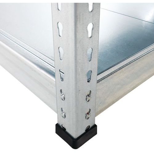 - Ochranné plastové pätky (možnosť dokúpenia kovových pätiek na prichytenie stojok regálu k podlahe).