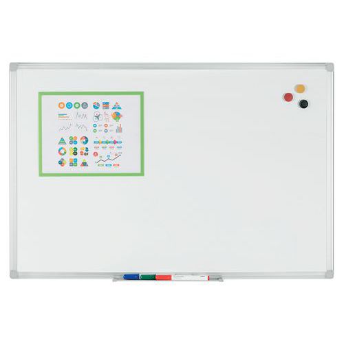 - Popisovateľné biele tabule s magnetickým povrchom.