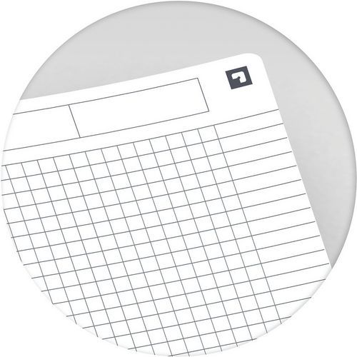 Štvorčekované stránky 5 mm majú záhlavie pre zobrazenie názvu a dátumu, aby bolo možné ľahko identifikovať obsah, a tiež dvojitý okraj vľavo pre poznámky.