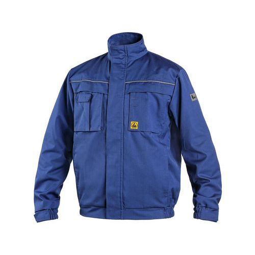 Pánska ochranná blúza so zatkanou vodivou mriežkou a ESD vlastnosťami. Uhlíkové vlákno tkané cez látku poskytuje vynikajúcu ochranu proti statickej elektrine. Kryté zapínanie na zips, multifunkčné náprsné vrecká, rukávy s nastaviteľnou manžetou, pás na bokoch do gumy, reflexné doplnky. Odporúčané použitie: výbušné prostredie, manipulácia s riadiacimi jednotkami, polovodičmi, plošnými spojmi a všeobecne s elektronicky citlivými súčiastkami. Reflexné doplnky: Áno Veľkosť: 46-64