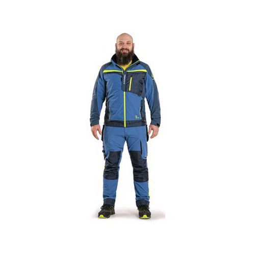 Panská kombinéza s kontrastnou farbou a reflexnými doplnkami. Štvorsmerná strečová konštrukcia umožňuje roztiahnutie materiálu vo všetkých štyroch smeroch pre ľahký a voľný pohyb. Vysoký podiel nylonu zabezpečuje schopnosť rýchleho schnutia. Blúzka je Veľkosť: 46-64 Materiál zvršku: Základný materiál: 93 % nylon 7 % elastan, doplnkový materiál: 100 % polyester, Cordura: 100 % nylon Reflexné doplnky: Áno Farba: modrá