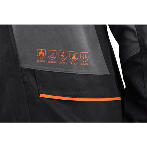 Pánska ochranná blúza, antistatická s trvalou nehorľavou ochranou PROBAN a úpravou odolnou proti kvapalným chemikáliám typu 6 a typu PB [6]. Vhodná tiež pre prácu pod napätím podľa normy EN 61482. Kryté zapínanie na zips a suchý zips, rukáv s nastaviteľnou manžetou, 4 predné vrecká, vnútorné náprsné vrecko na zips. Reflexné doplnky zvyšujú bezpečie v prostredí so zníženou viditeľnosťou. Odporúčané použitie: zvárači, petrochemický priemysel, energetika, plynárenstvo a rafinérie, práca pod napätím, práca na veternej elektrárni. Odev spĺňa vyššie uvedené normy iba ak je nosený celý set blúza + nohavice. Reflexné doplnky: Áno Veľkosť: 46-64
