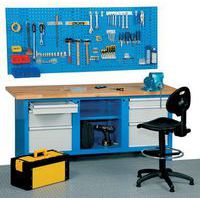 Perforovaný panel na montáž držiakov nástrojov a plastových boxov. Vyrobený z plechu hr. 0,8 mm, povrchová úprava práškovým lakom v modrej farbe RAL 5012. Otvory štvorcového tvaru 10 x 10 mm s rozstupom 38 mm. Nosnosť panelu 30 kg. Určený na upevnenie na stenu. Hĺbka panelu 25 mm vrátane výstuh.