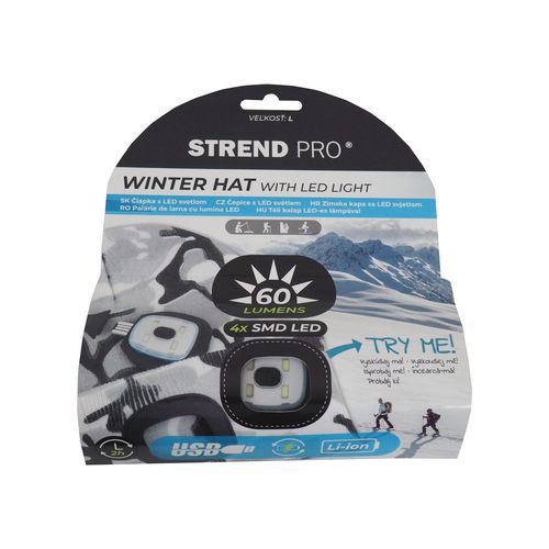 Čiapka LED, veľkosť L, s LED svetlom, sivá kamufláž